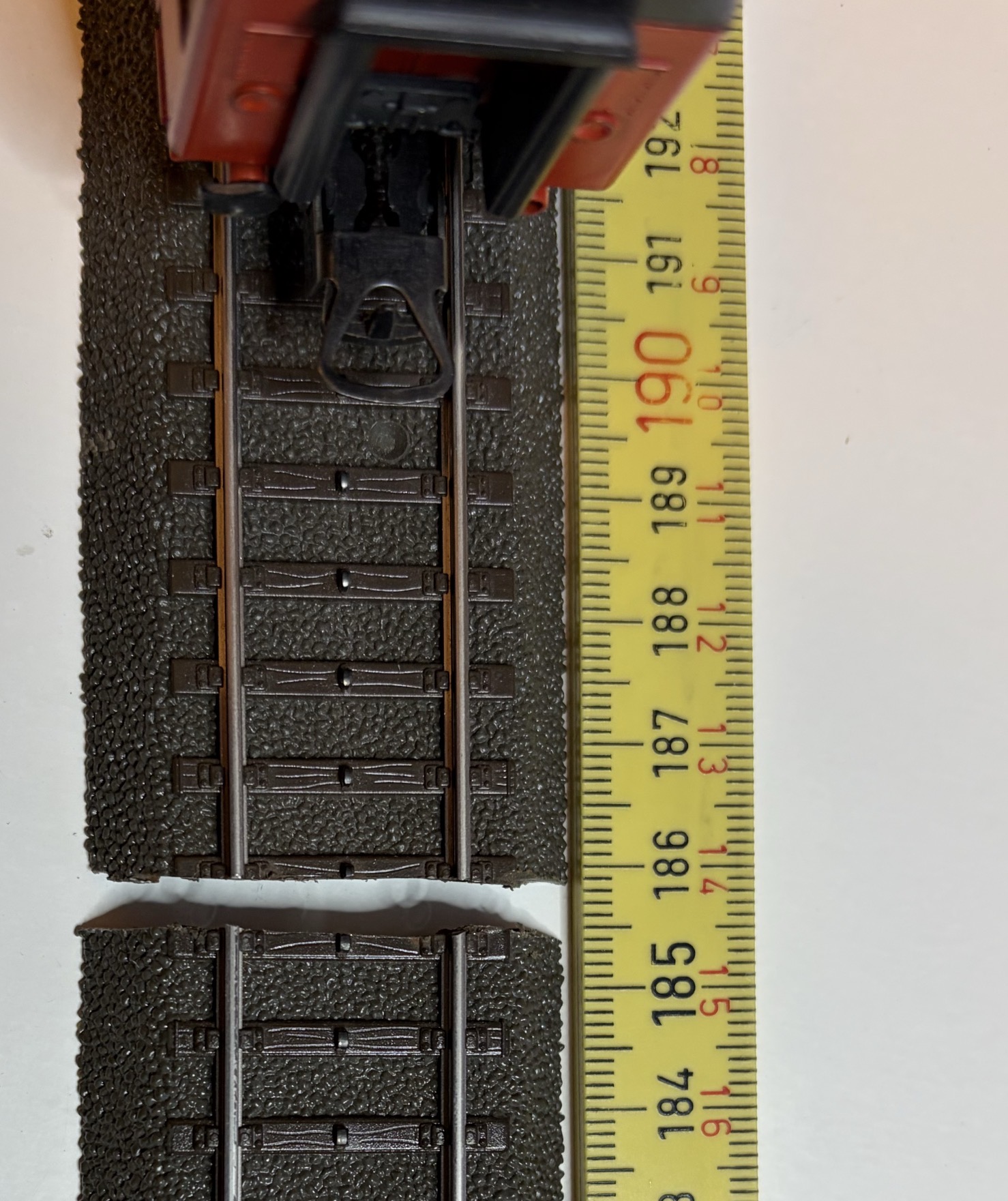Og lokomotivet kører uden problemer. Også over på næste skinnestykke med 1 mm gab imellem.